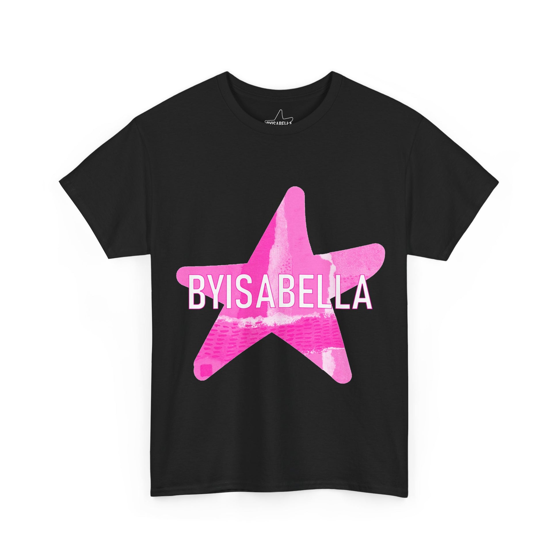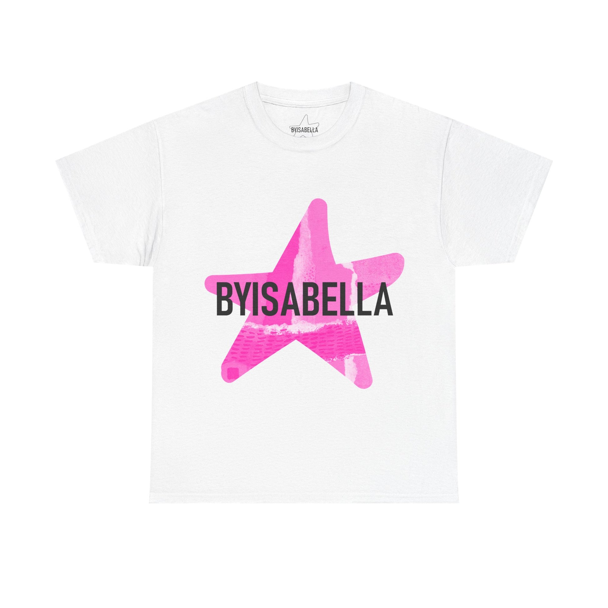 100% cotton tee with 'Pretty In Pink' byisabella logo design